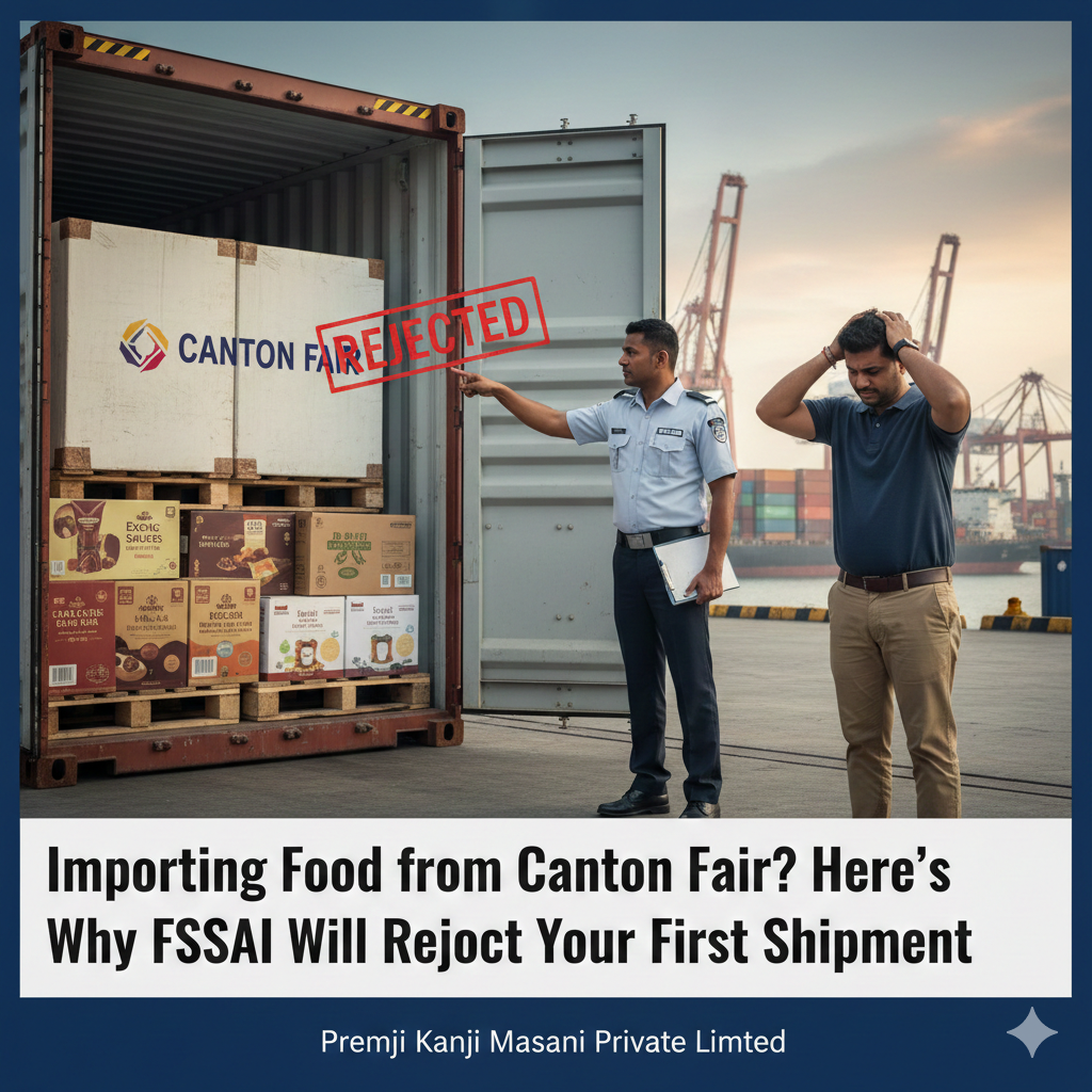 At Premji Kanji Masani Private Limited, we clear Food Ingredients, Enzymes, Additives, Confectionery, Health Supplements, and Specialty Food Products. We’ve seen hundreds of Canton Fair imports fail FSSAI checks.