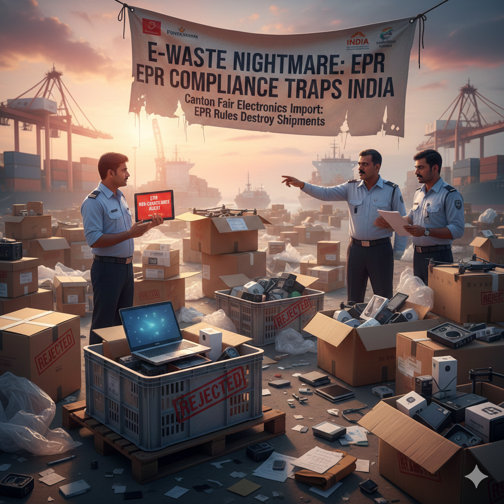 The sleek consumer electronics, LED lights, Bluetooth speakers, mobile accessories, and IT hardware that looked “ready to sell” in China now face Extended Producer Responsibility (EPR) compliance under India’s E-Waste Management Rules, 2016 and Plastic Waste Management Rules, 2016. Your shipment doesn’t move. Your importer-exporter code gets flagged. Demurrage starts ticking at ₹6,000–₹12,000 per day.